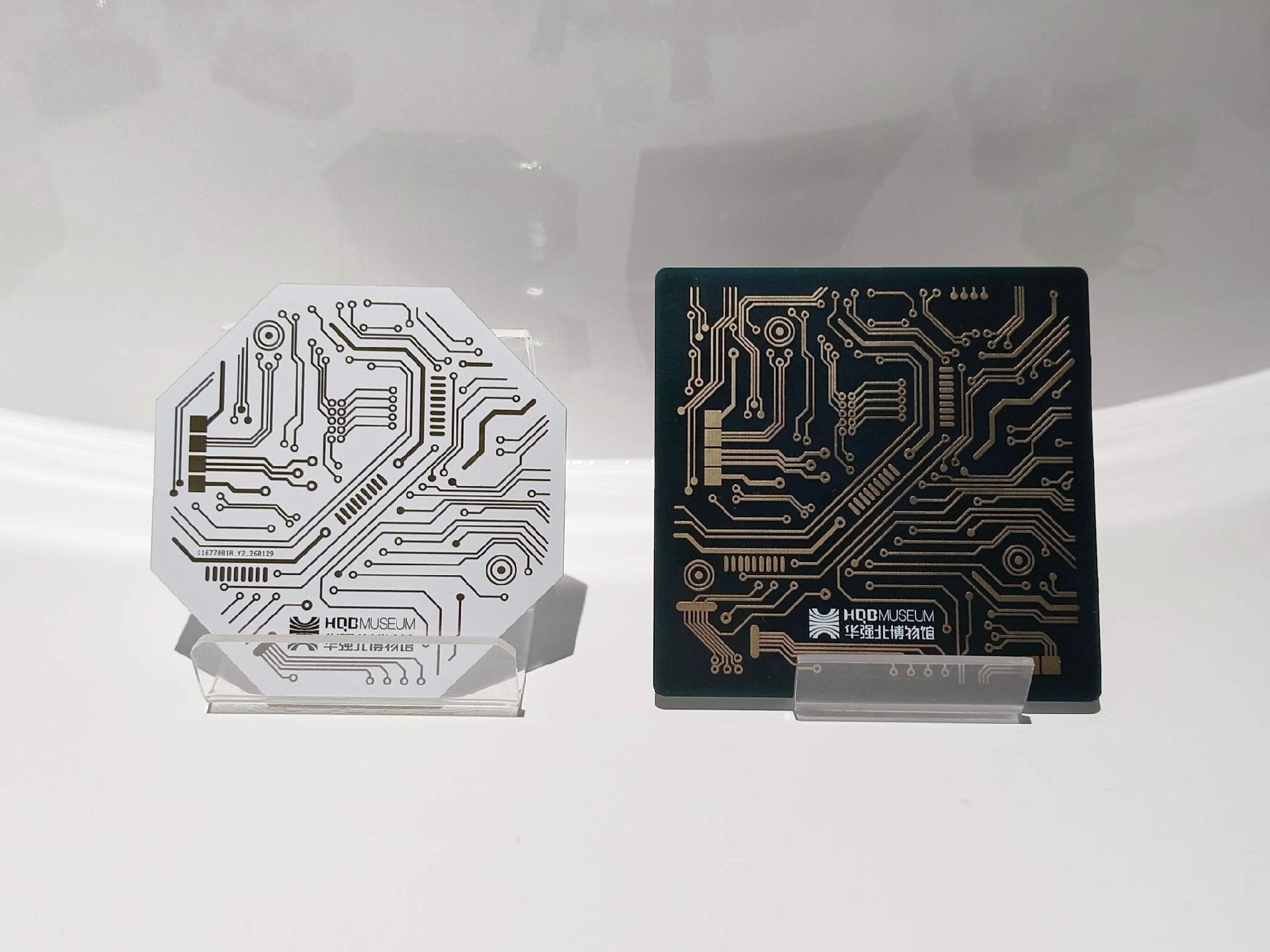 以华强北电子产业为灵感,深度提取电路板肌理、硬件结构与科技美学特质。我们将城市创新基因与现代文创设计相融,让无形的电流与技术记忆,化作可观赏、可使用、可收藏的创意物件,既可作为桌面摆件,亦能用作杯垫,让博物馆里的科技故事,以直观可触的方式融入日常,传递属于华强北的硬核创新魅力。