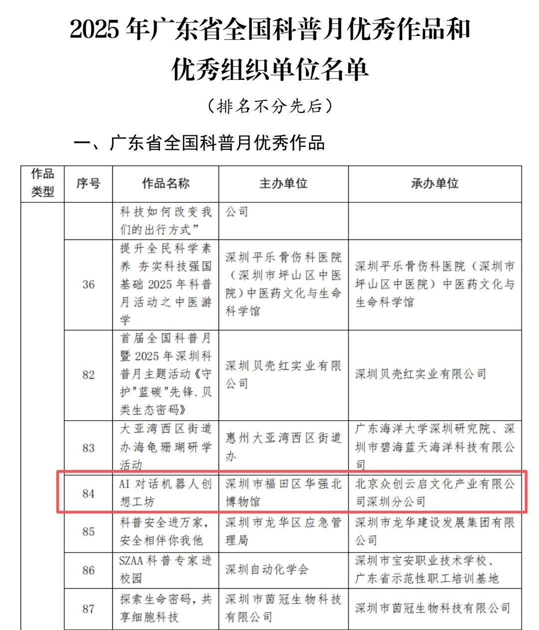 近日,广东省科学技术协会公布2025年“全国科普月”活动评定结果,深圳市福田区华强北博物馆荣获“优秀组织单位”称号,由我馆策划开展的“AI对话机器人创想工坊”同时获评“优秀科普活动案例”。两项荣誉不仅是对华强北博物馆在科普推广方面持续努力的肯定,也展现了博物馆在科技与公众教育融合领域的扎实积累与创新实践。