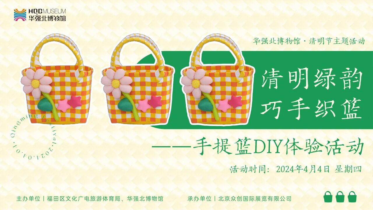 清明节作为中国传统的节气之一,不仅有着悼念祖先、扫墓祭奠的传统习俗,也是人们亲近自然、踏青游玩、享受春天乐趣的节日。在这个缅怀故人、踏青赏花的清明时节,华强北博物馆将开展“清明绿韵▪巧手织篮——手提篮DIY”活动,邀请您一起编织记忆,传承文化,共度清明。