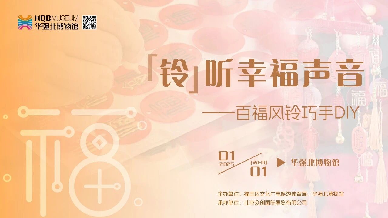 福,自古以来便承载着中华民族对美好生活的殷切祈愿,元旦将至,华强北博物馆精心筹备了“‘铃’听幸福声音——百福风铃巧手DIY”活动,诚邀您共赴福文化之约。