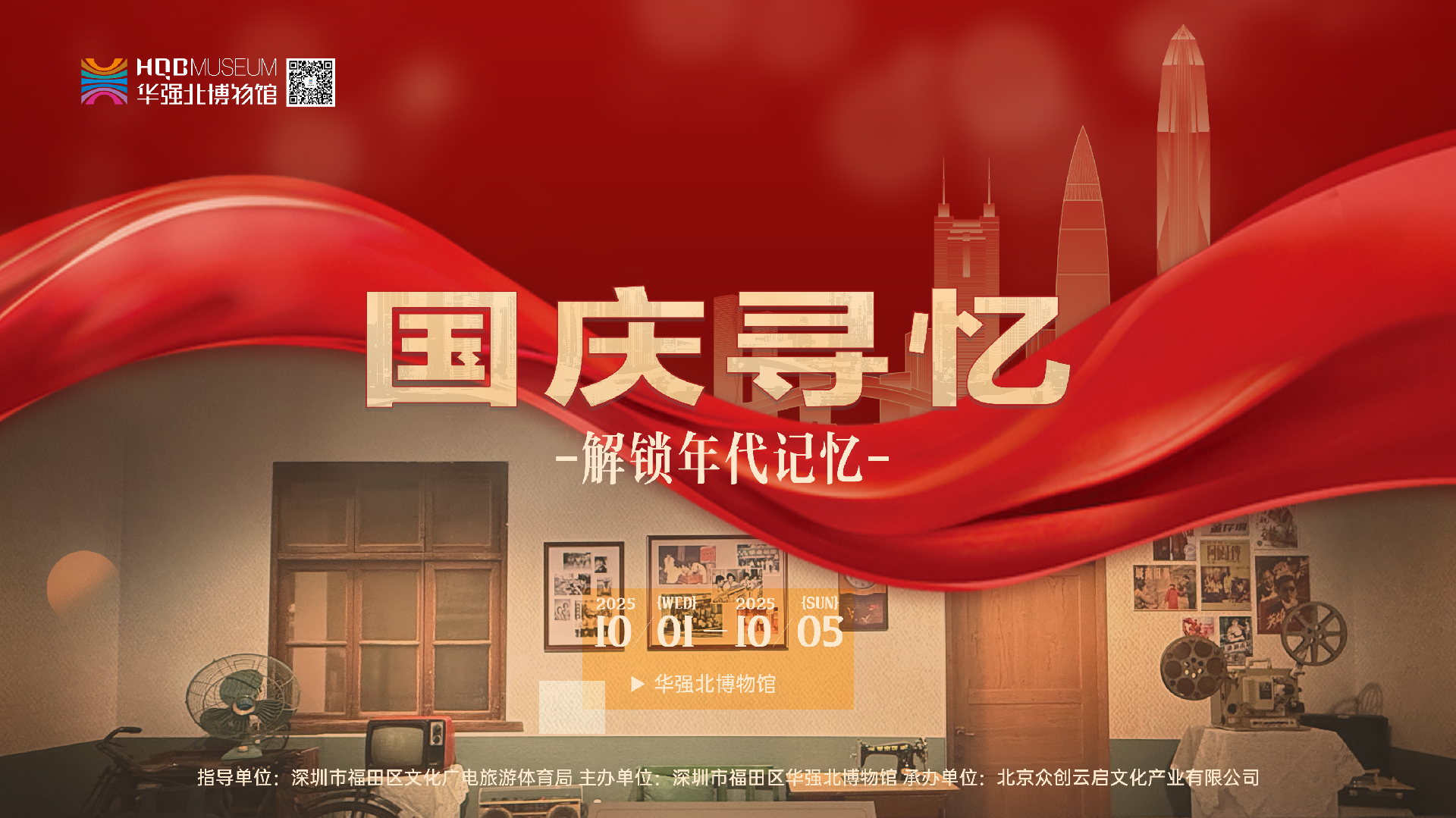 “国庆寻忆·解锁年代记忆”活动于2025年10月1日至10月5日在华强北博物馆开展。活动以“老物件承载时光,二维码解锁记忆”为核心形式,精选展厅内具有时代代表性的展品,如第一台国产收录机、老式计算机、改革开放初期的粮票与电子元件等,为其专属定制“时光二维码”。