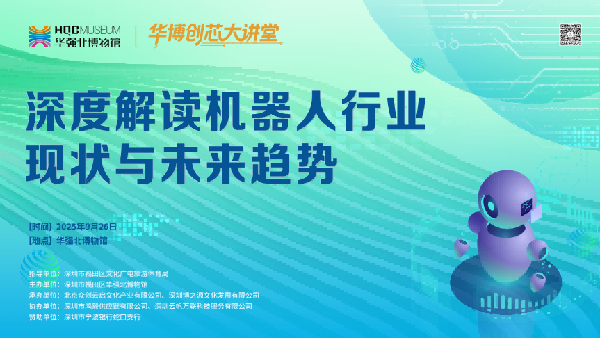 为积极响应国家关于发展战略性新兴产业的号召,推动电子信息产业创新与融合,华强北博物馆在“馆企共建”模式基础上持续探索新形式,正式推出“华博创‘芯’大讲堂”系列活动。首期活动聚焦机器人领域,于9月26日在博物馆咖啡文创区成功举办。