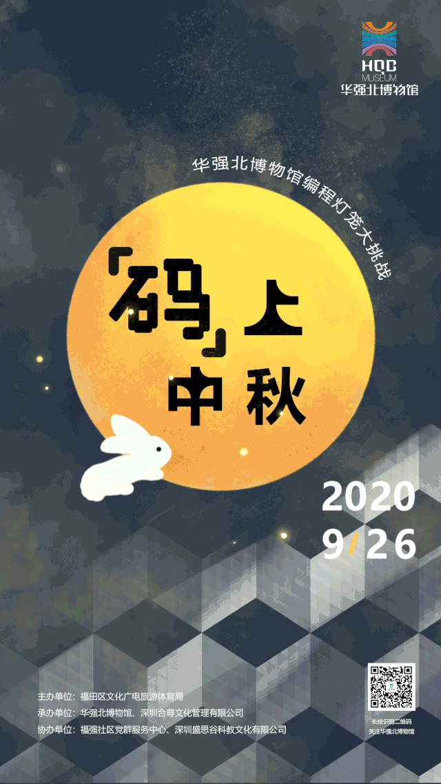 2020年9月26日 码上中秋 2020年,中秋和国庆不期而遇。为了贺中秋、迎国庆,即将开馆的华强北博物馆携手深圳盛思谷科教文化有限公司,于9月26日下午在福强社区党群服务中心举办了“「码」上中秋——华强北博物馆编程灯笼大挑战”活动。