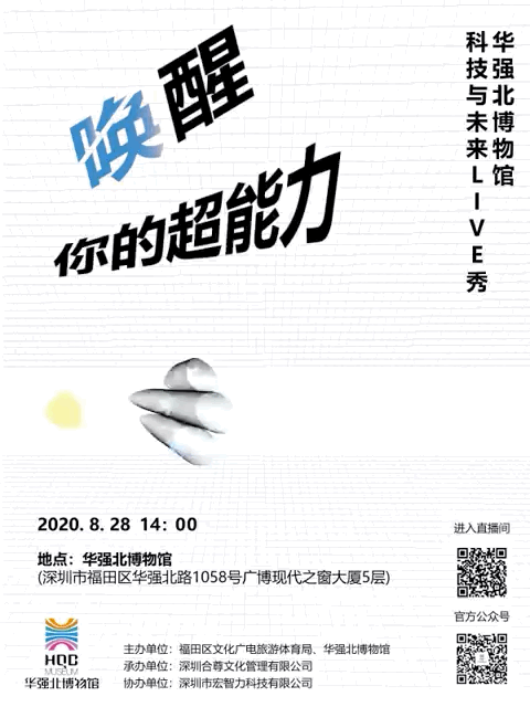 2020年8月28日 唤醒你的超能力 2020年8月28日下午,即将开馆的华强北博物馆携手深圳市宏智力科技有限公司,共同举办“唤醒你的超能力——华强北博物馆科技与未来LIVE秀”,活动围绕科技与生活,通过竞技体验、对谈讲座的趣味形式,使大家感受到科技融合的魅力。