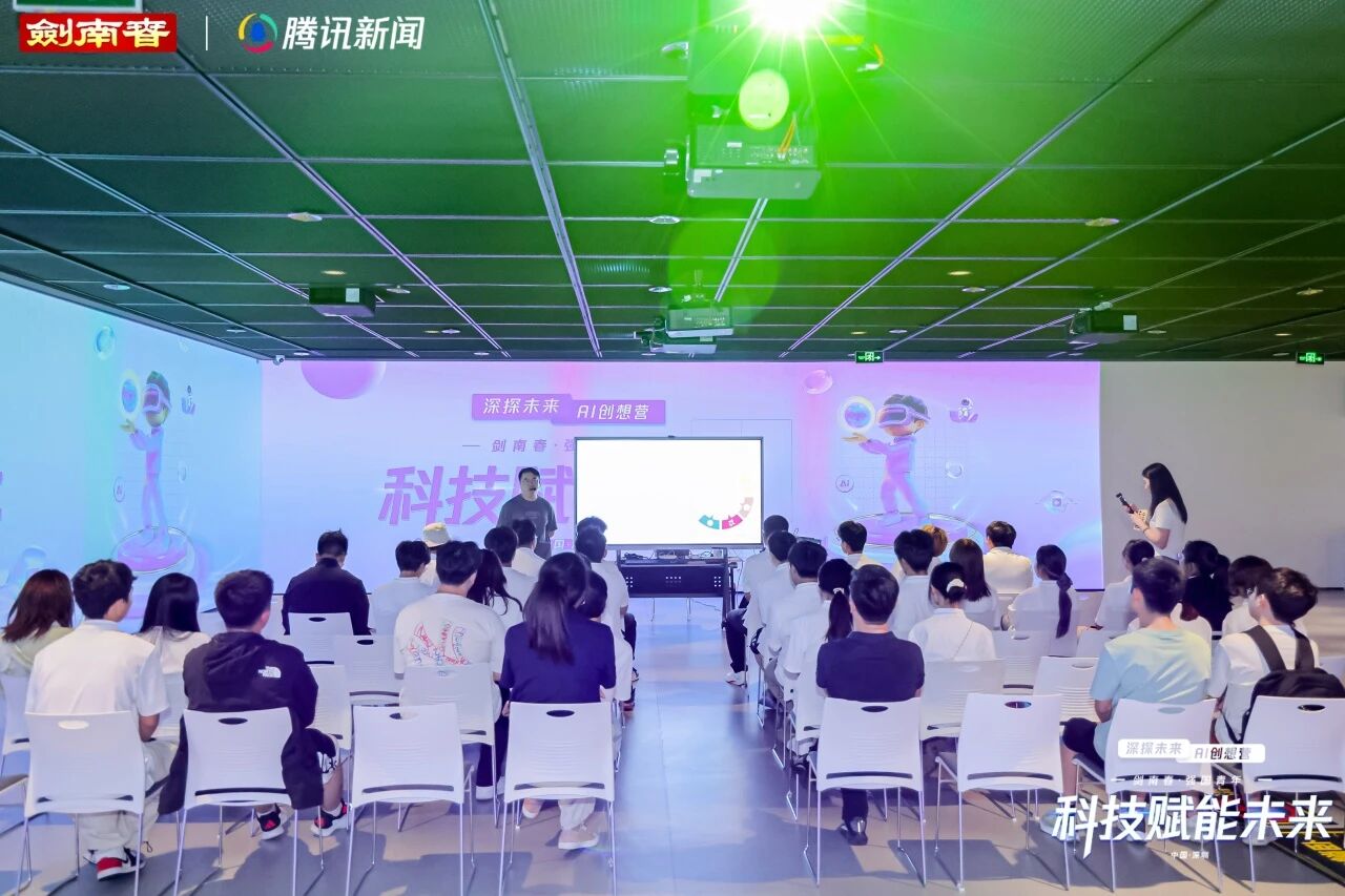 在这个充满活力的夏日,华强北博物馆携手腾讯新闻与剑南春,共同举办了剑南春·强国青年“科技赋能未来”深探未来·AI创想营。活动现场,近50位青年学子沉浸于前沿科技的魅力中,以脑波为笔,在AI的画布上勾勒出对未来的无限遐想。